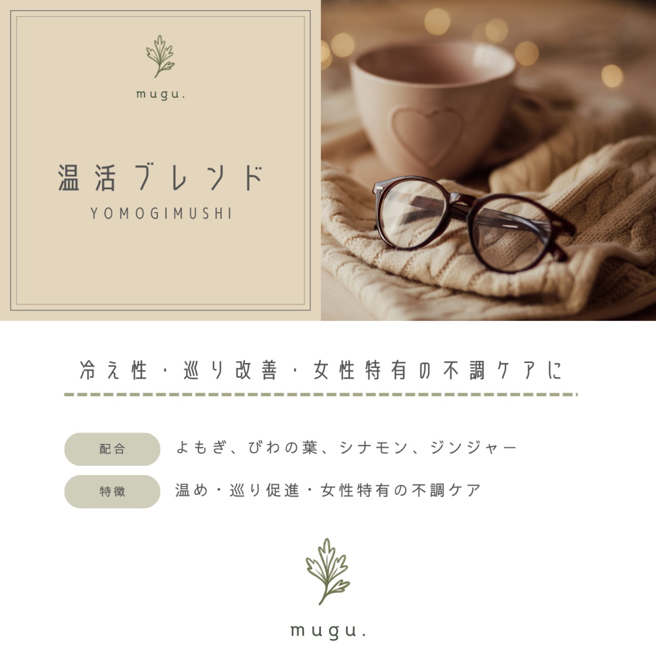 mugu. よもぎ蒸し【温活ブレンド】20g×5個|よもぎ・びわの葉・シナモン、ジンジャー|ムグ